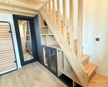 Spécialisés dans le mobilier et l’agencement sur mesure, nous concevons et réalisons des espaces entièrement adaptés aux besoins de nos clients : dressings, bibliothèques, cuisines, bureaux, aménagements professionnels… Chaque projet est pensé avec soin, fabriqué dans notre atelier en France, et conçu pour allier fonctionnalité, esthétique et durabilité.